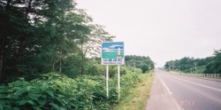 | 中標津へは今回で3回目ですがその感想、一番は、旅館「藤や」でのシマフクロウ。2番目は、どこか外国のような広大な牧場、しかも家が見えず、道路は果てしなく真っ直ぐ。というところでした。 今回は、ゆっくりと観光気分で走ろうと考えていましたから、写真も比較的数多く撮りました。走ることに集中していると、写真を撮る余裕もなくなってしまいます。 「水曜どうでしょう」的、カントリーサインを撮ってみました。 |