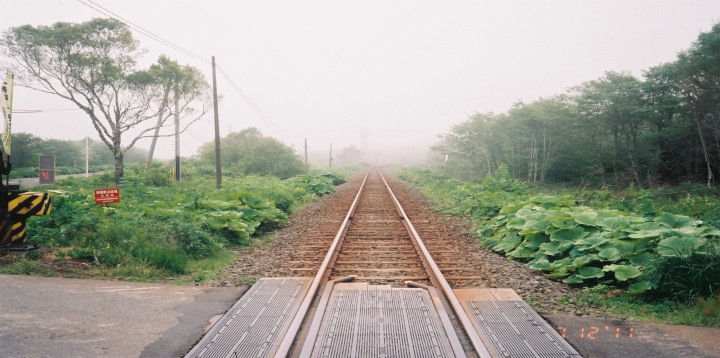 | 根室駅に9時30分に戻り。本日の目的地、霧多布へ。 いつもそうですが、つらい区間は、極端に写真の枚数が減るようですな。 霧多布までは、写真枚数2枚でした。 根室駅前道りを左折して200メートルでまた、左折すると落石方面。すぐにアップダウの連続。 厚床から根室へ来た44号線を戻ればよかったと悔やむ。 この写真は昆布盛駅の少し先。このあたり、ずっと店、自販機などない寂しい風景。 霧で、視界が悪い、地図を見ると海が左にあるのだろうが全くわからない。 ただ、極端に気温が下がる場所があるのでした。きっと海が側まできているのだと思いました。 落石を右折してからは、平坦で車も極端に少なくなり走りやすい。 |