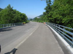 | 上川町で、国道39号と333号に分かれます。39号線を行くのが道東方面のメイン道路で、層雲峡、石北峠、北見へと延びています。 333号線は、石北線に沿って走ります。、メイン道路から外れているので、全くというほど車がと通過しません。 写真は、今日の難所、北見峠の始まり、延々と登りが続きます。 |
