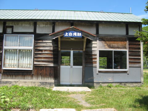 | 現役の駅舎、決して廃屋ではありません 時刻表を見ると一日に停まるのは、上下で2便のみでした。 |