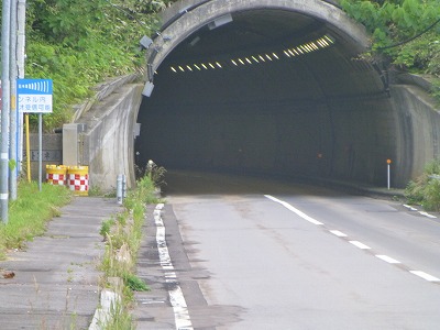| このあたりにはトンネルが多くあり、その全てのトンネルには自転車が通過できる 歩道はありません。が、車の通過はほとんどありません。 途中、銚子トンネル、滝ノ沢トンネルがあり狭く嫌な個所でしたが車の通過がなく呆気 なく通過できました。 |