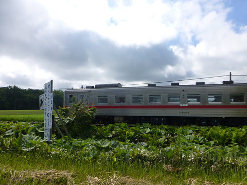 斜里に向かいます。途中、網走行きの1両の電車にあいました。