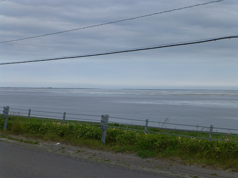 結構きつい峠越えになりました。しかし、あっけなく頂上にたどり着くと長い下り坂が続きます。最後は10キロの真っ直ぐな道路を走ると根室海峡に出るのです。
