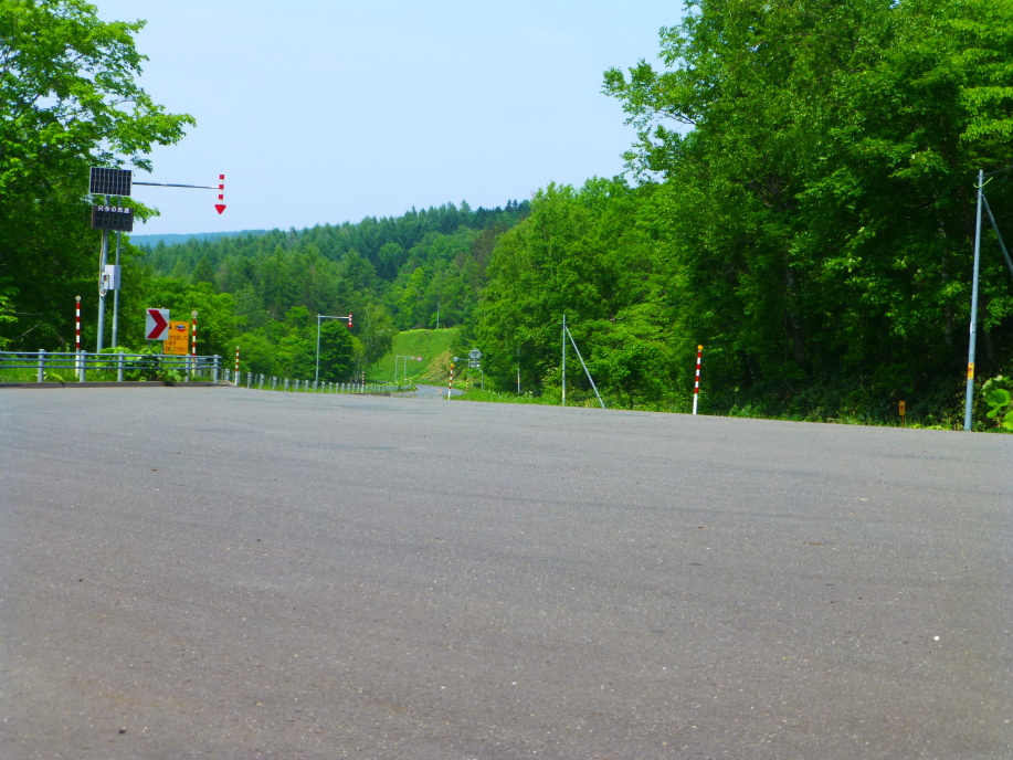 | 金華峠を下りきり、旭川から網走に向かう、国道39号線を横断して、南下します。 |
